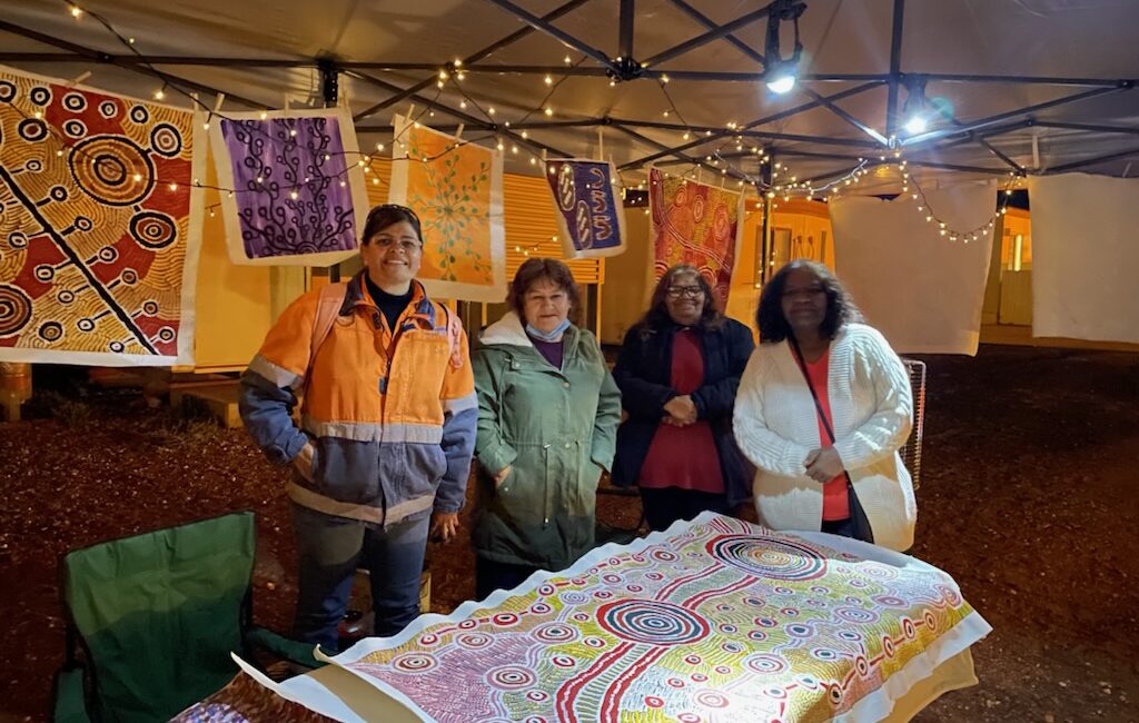 Anangu Mining employees Delrae Brady (left) and Barbara Hay (second from left) enjoyed a yarn after work at Prominent Hill with AMYAC representatives from Coober Pedy. Joanne O’Toole (right) and Patricia Fatt (second from right) visited the Prominent Hill Mine site as guests of OZ Minerals celebrating NAIDOC Week. This years’ theme was “Get up, Stand up, Show up”. The strong theme was evident in the fantastic artwork brought to the minesite for the week long celebration. The annual event also showcased traditional foods hitting the camp menu and a fire with some elders from the traditional owner group in attendance.